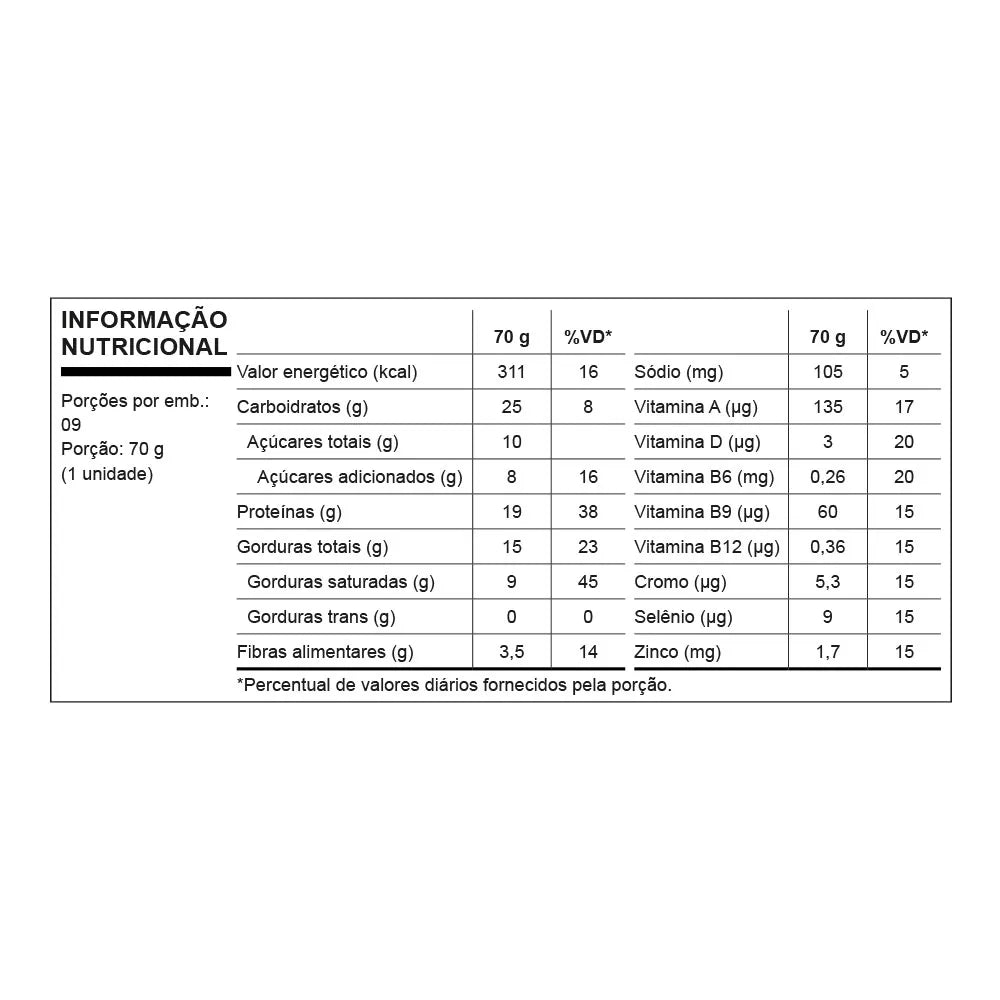 Consumir uma unidade ao dia; Suporte balanceado de nutrientes ideal para refeições intermediárias.