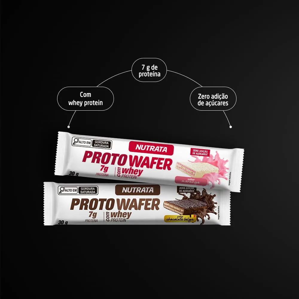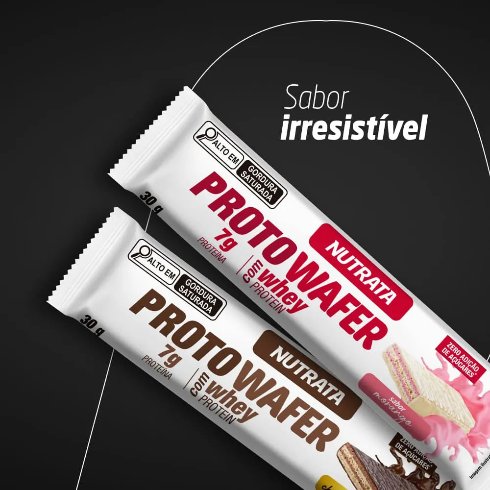- 6 g de proteína por barra na edição Havanna e 7 g de proteína por barra nos outros sabores da Proto Wafer;