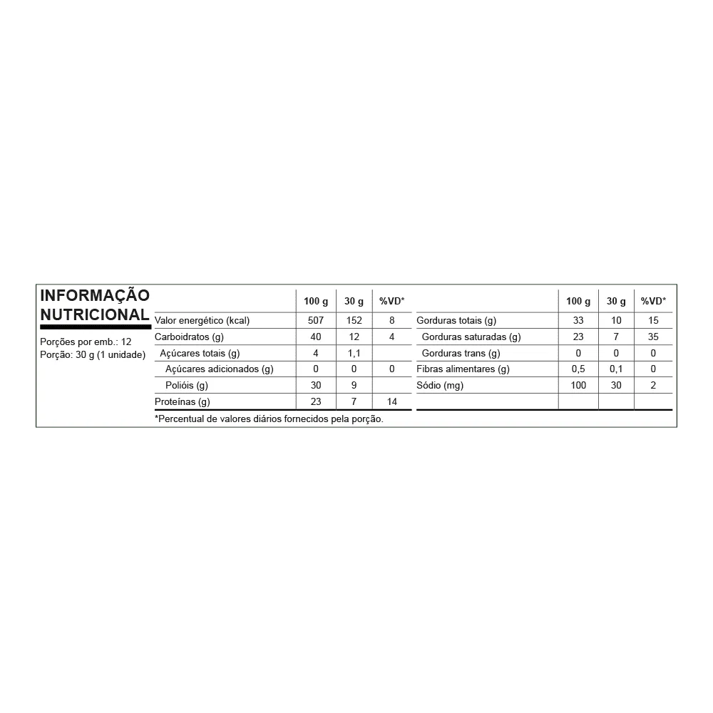 CONTÉM GLÚTEN. CONTÉM LACTOSE. ALÉRGICOS: CONTÉM TRIGO E DERIVADOS DE LEITE E SOJA. PODE CONTER AVELÃ, CASTANHA, AMENDOIM, AMÊNDOA E CEVADA.