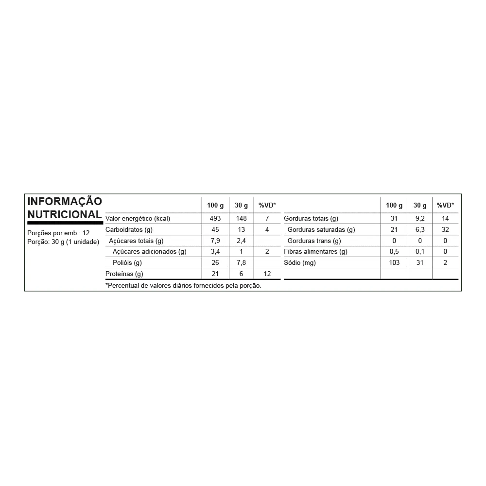 CONTÉM GLÚTEN. CONTÉM LACTOSE. ALÉRGICOS: CONTÉM TRIGO E DERIVADOS DE LEITE E SOJA. PODE CONTER AVELÃ, CASTANHA, AMENDOIM, AMÊNDOA E CEVADA.