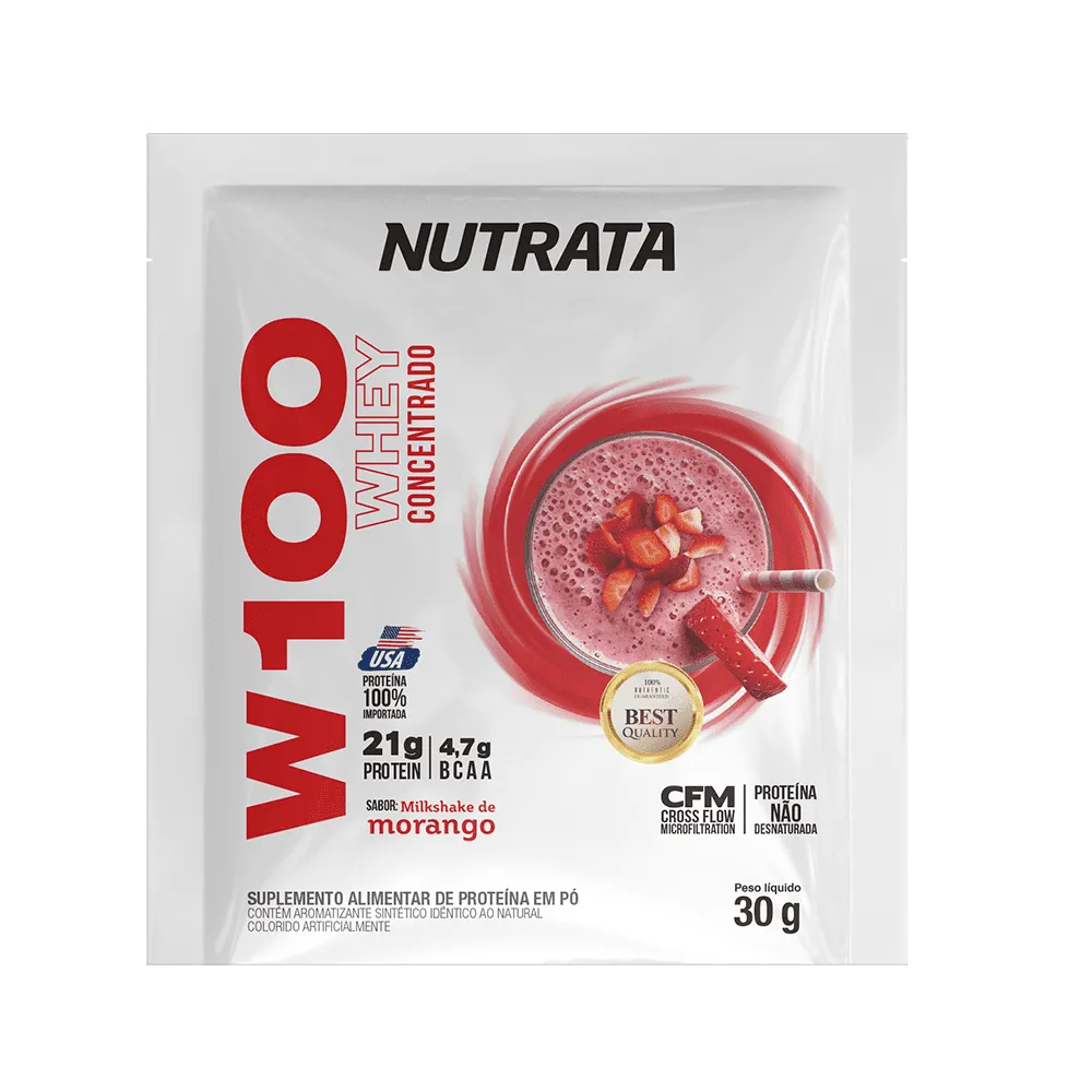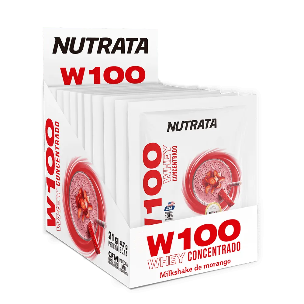 W100 Whey Concentrado 30g display c/ 12 sachês - Milkshake de Morango