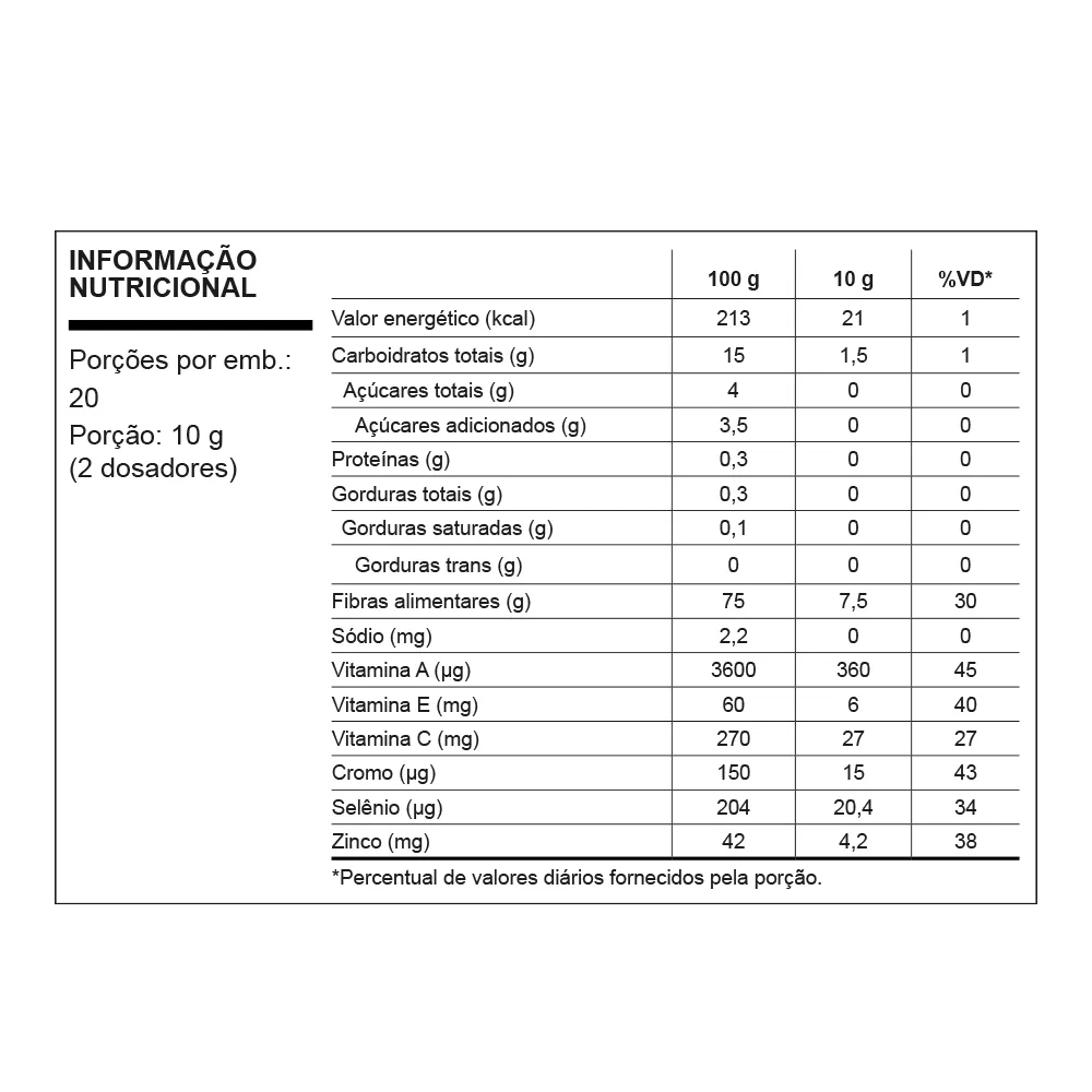 Modo de preparo: Diluir 10g (02 colheres dosadoras) em 200ml de água e agitar até completa dissolução; Consumir 1 (uma) porção ao dia ou conforme orientação de médico ou nutricionista.